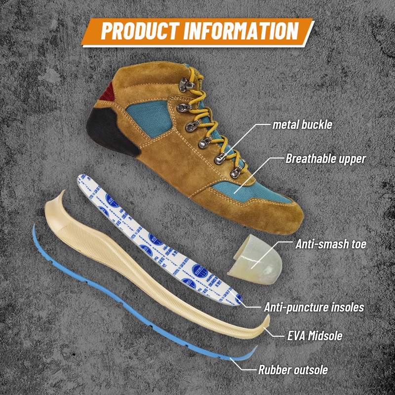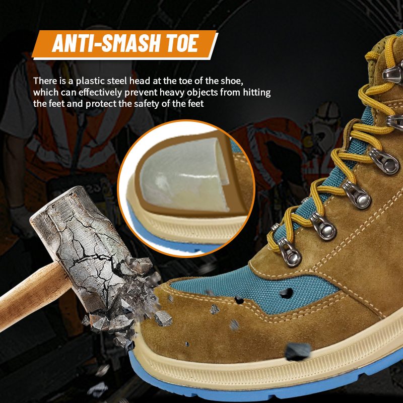Có một đầu thép bằng nhựa ở mũi giày, có thể ngăn chặn hiệu quả các vật nặng va vào chân và bảo vệ sự an toàn cho bàn chân.