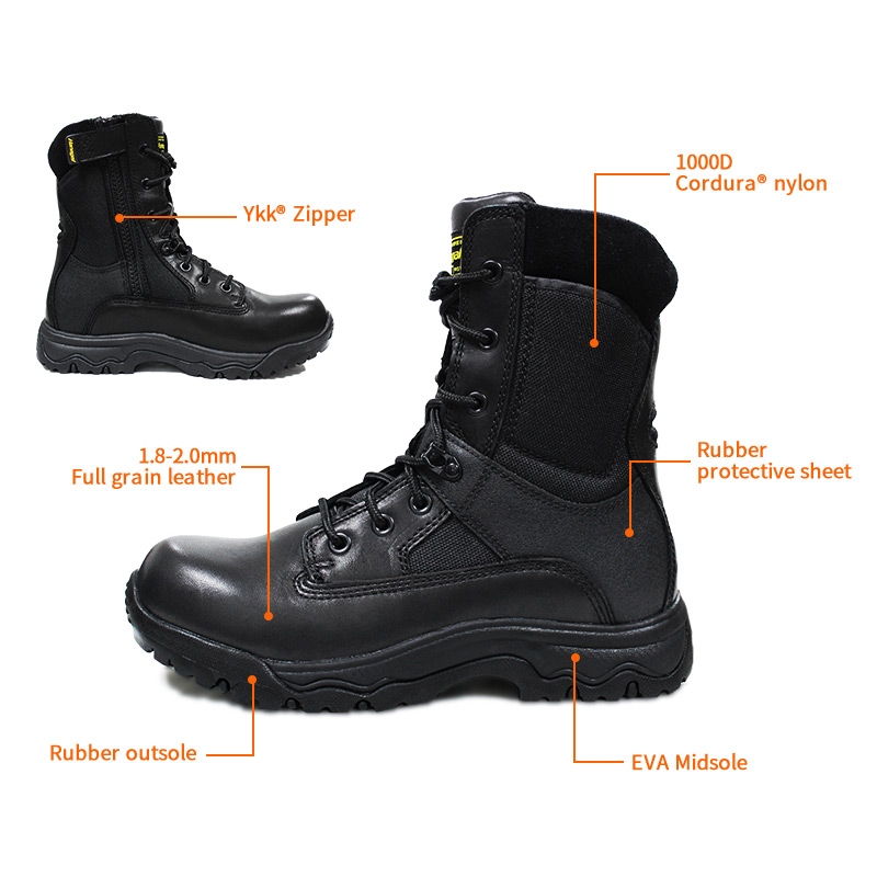 Da nguyên hạt đáp ứng độ tin cậy của YKK. Giày cảnh sát bằng da nguyên hạt có dây kéo YKK kết hợp độ bền của da cao cấp với hiệu suất đáng tin cậy của khóa kéo YKK—đi nhanh, vừa vặn an toàn và được thiết kế để tồn tại qua mọi ca làm việc. Gửi cho chúng tôi yêu cầu để biết thêm thông tin.