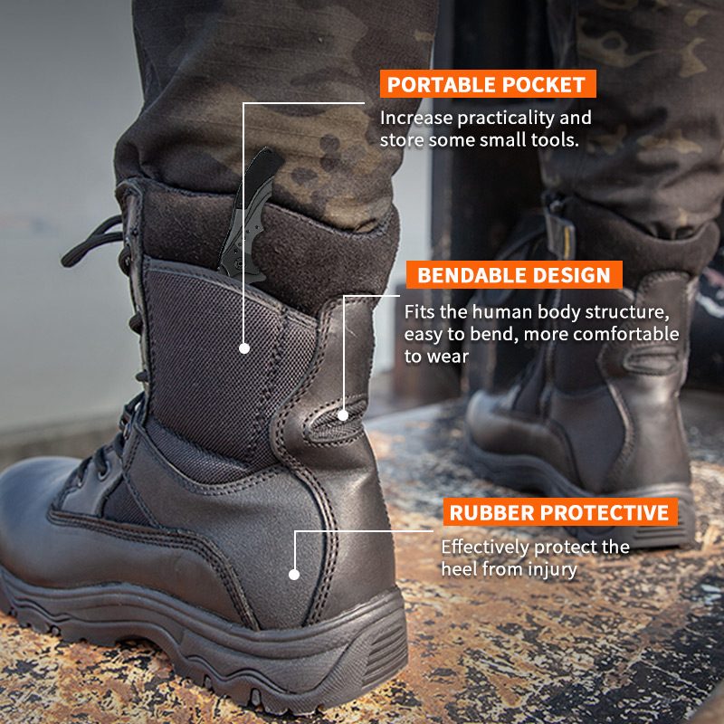 Những đôi Bốt cảnh sát bằng da nguyên hạt có dây kéo YKK này có sẵn để tùy chỉnh về màu sắc, chất liệu và chi tiết, với số lượng moq là 800 đôi, lý tưởng cho việc hợp tác thương hiệu và mua sắm theo nhóm. Và những đôi ủng đi săn này có những ưu điểm sau:
